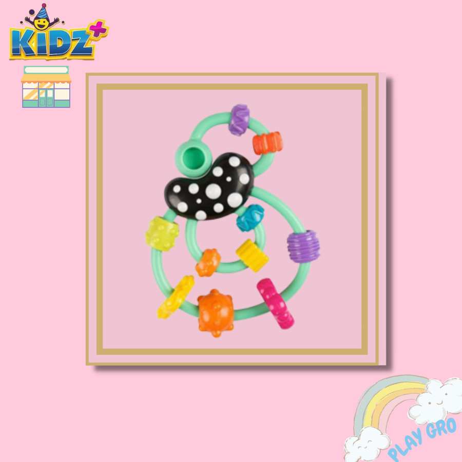 Bentuk-bentuk cerah yang menarik dari Rattle pendengaran. Bentuk bertekstur kenyal yang lembut sangat ideal untuk menenangkan gusi yang sakit, sementara bunyi klikklak dapat terdengar ketika diguncang – sempurna untuk stimulasi pendengaran.