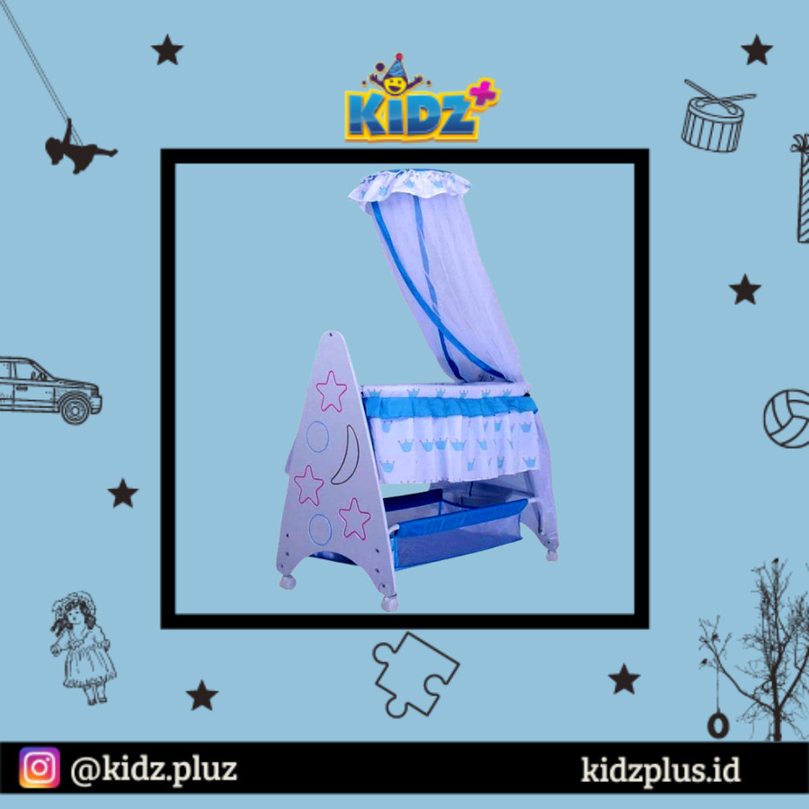 Dilengkapi dengan kelambu 1 tiang dengan musik, vibration dan lights untuk menambah kenyamanan anak Anda