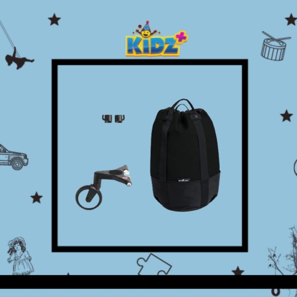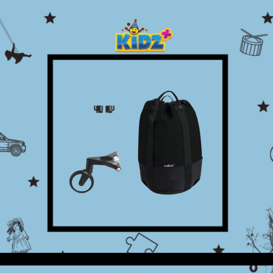 YOYO bag hooks onto the YOYO stroller in seconds and, thanks to its wheel, supports an additional 10 kg (22 lbs) without extra efforts.