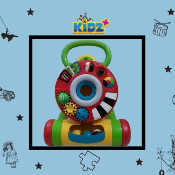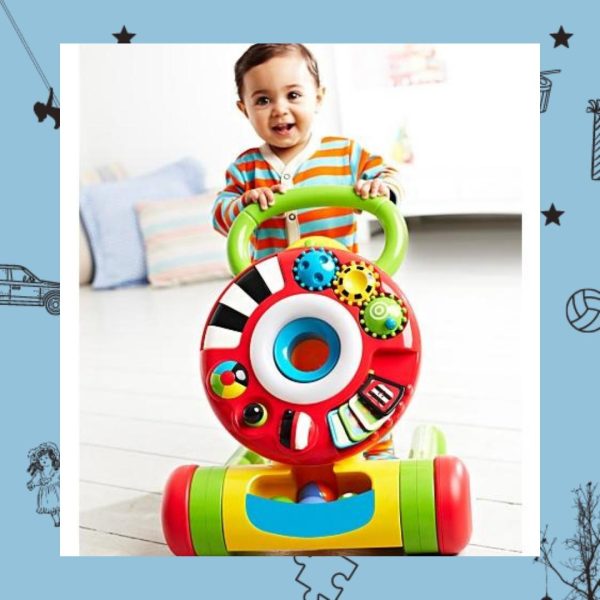 Lights and Sounds Walker melihat bayi Anda mulai dari duduk dan menarik ke atas, hingga berdiri dan berjalan dengan percaya diri. Pertama mereka bisa bermain dengan cincin aktivitas di lantai. Permainan, seperti memasukkan bola ke dalam lubang, membalik halaman, dan memutar roda gigi, membantu mengembangkan koordinasi tangan dan mata bayi Anda. Kemudian meletakkan cincin aktivitas di alat bantu jalan mendorong bayi Anda untuk menarik diri dan mulai berjalan dengan dukungan.