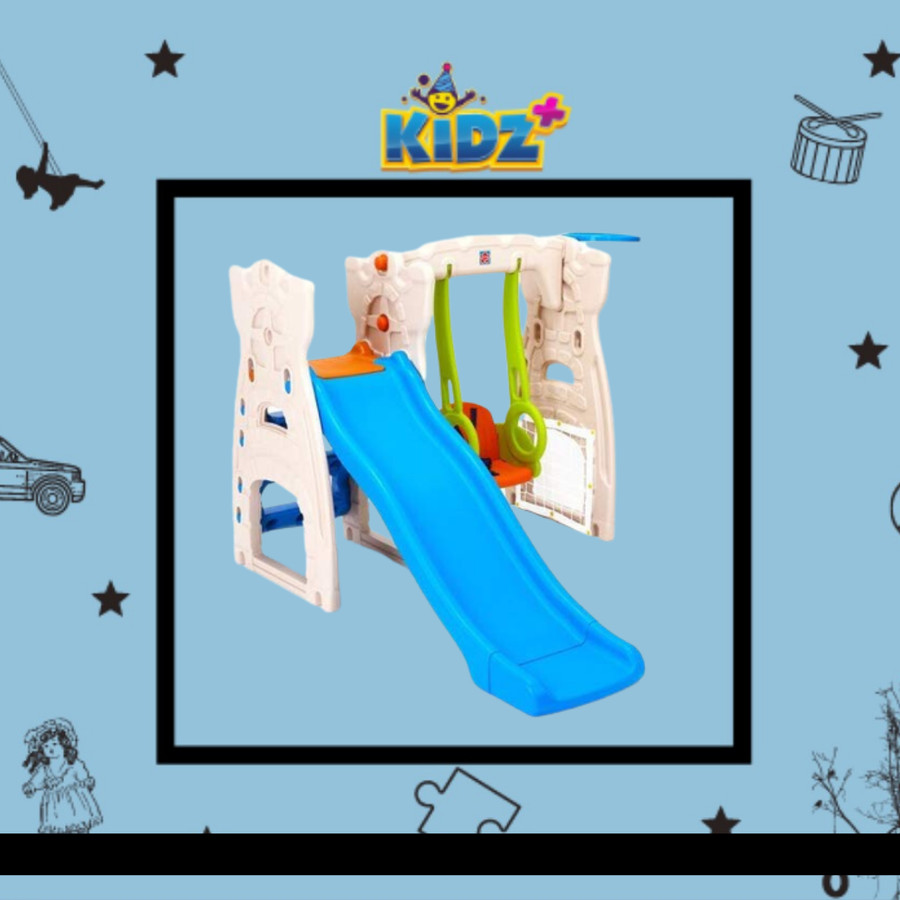 Slide, Swing, Crawl, Jump & Hoop. Nonslip Grip & Simple Steps. 3 Foot No-flex Slide. Extra Sturdy Toddler Swing Seat With 3-point Seat Belt. Basketball Hoop. High Side Walls And Sturdy Footers For Extra Stability.