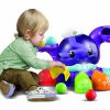 Bermain petak umpet (peak a shoe), bola dimasukan ke topi atau tangan gurita lalu gurita akan bertanya bola ada di kaki sepatu sebelah mana ??? terdapat 5 bola warna – warni, sepatu warna – warni, membantu anak belajar berhitung 1 – 5. Terdapat tombol musik jika di pencet terdapat lagu – lagu.