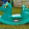 Kuda goyang ukurannya pas untuk balita, dan tepi yang halus serta permukaan yang mudah dibersihkan menjadikannya pilihan favorit para ibu.