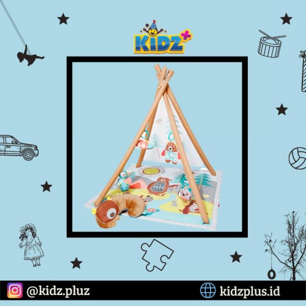– Empat cara bermain: Overhead play, tummy time, duduk bermain, playmat