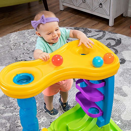 Kembangkan keterampilan motorik dengan mengambil dan menjatuhkan bola melalui tabung atau menuruni jalan