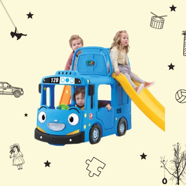 Bermain yang paling bahagia. Ketika Anda sampai di halte bus Anda, jangan turun begitu saja, geser ke bawah bus! Atau Anda dapat menggunakan bus seperti rumah bermain dan bermain di dalam dengan semua teman Anda. Ini adalah rumah bermain dengan seluncuran yang menyenangkan!