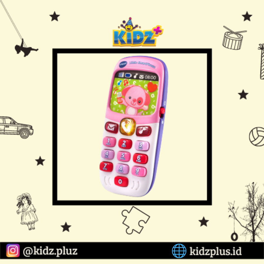 Ring up some fun with the VTech Little SmartPhone. This small size pretend Vtech play phone is perfect for little hands and will engage toddlers as they dial and learn. Toddlers will love pressing buttons while they learn numbers and colors. Featuring music, voicemail and phone buttons, the toddler cell phone encourages sing-along and role-play fun. With a holographic image of a puppy and kitty, the Vtech Little Smartphone is designed to stimulate your child”’s imagination. This brightly colored Vtech play phone is designed for children ages 6 months to 36 months.