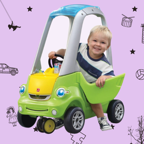 – Dorong mainan coupe dengan papan lantai yang dapat dilepas
